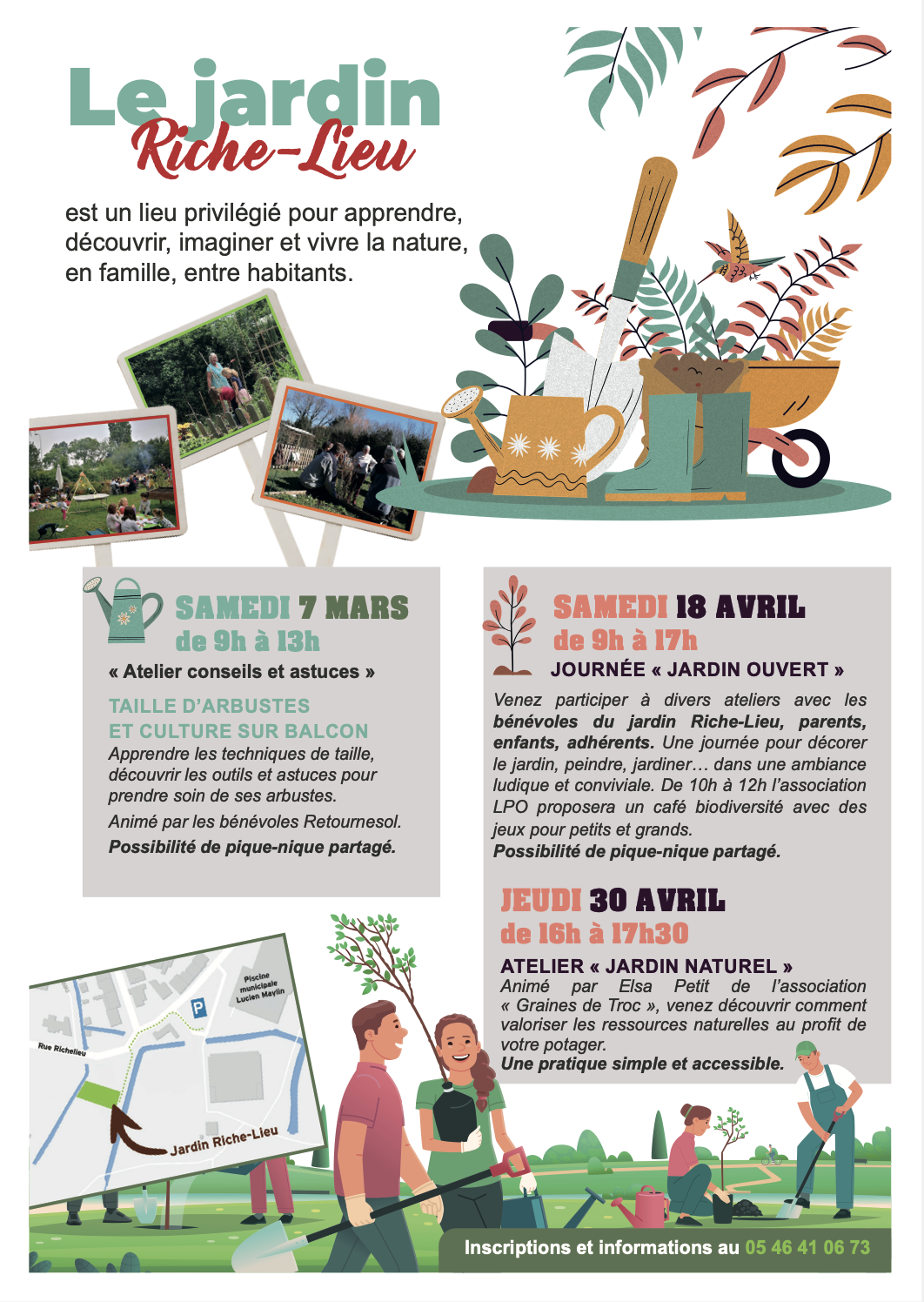👀 Journée « jardin ouvert » avec participation à différents ateliers aux côtés des bénévoles du jardin Riche-Lieu, parents, enfants et adhérents. Activités de décoration, peinture et jardinage.